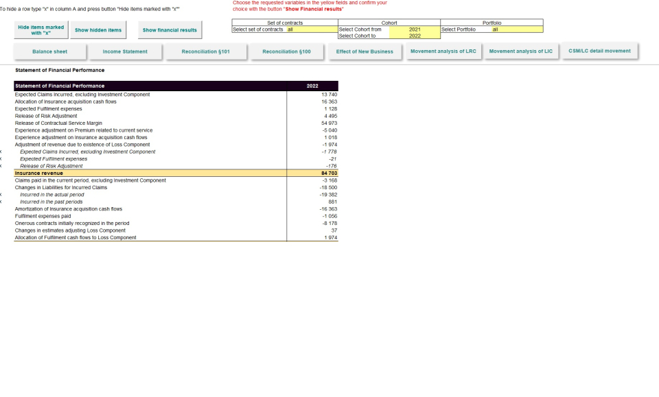 IFRS 17 reporting tool is developed in MS Excel environment to help report the IFRS17 results easily and clearly. This can be a quick win solution before you implement complex reporting within your internal systems.