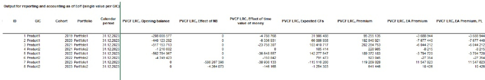 - Roll-forward of IFRS 17 LRC & LIC (PV CF, RA, CSM, Loss Component)