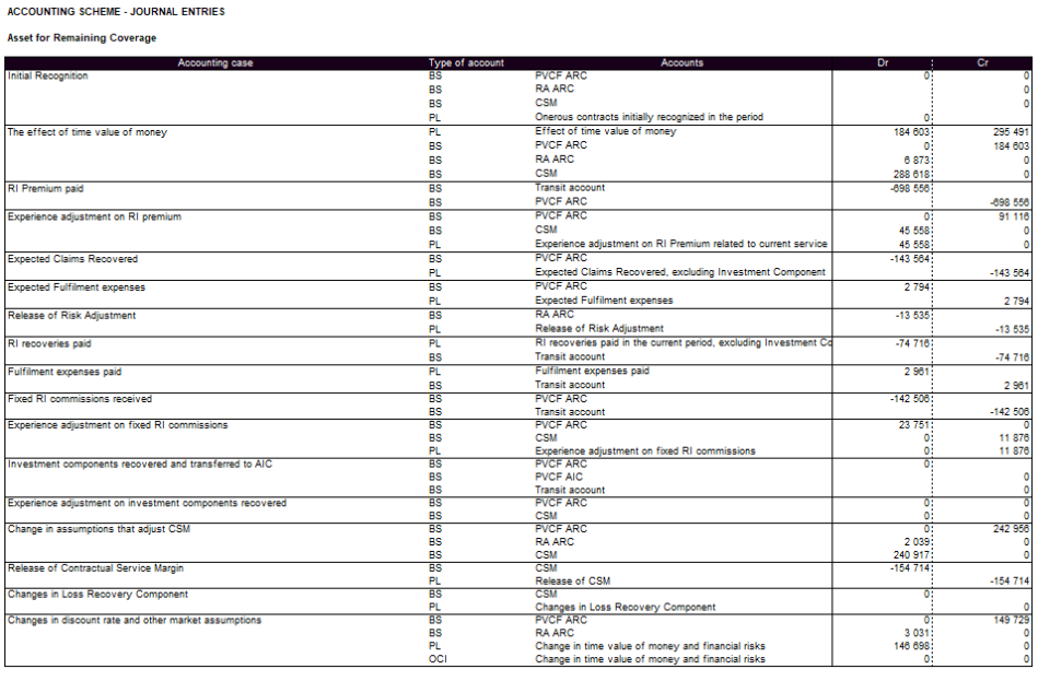 If you are interested in how the IFRS 17 principles should be reflected in your general ledger, you can also display journal entries based on a predefined chart of accounts and accounting scheme.