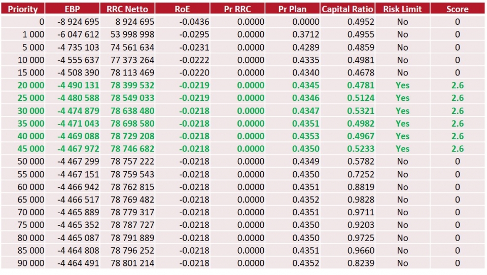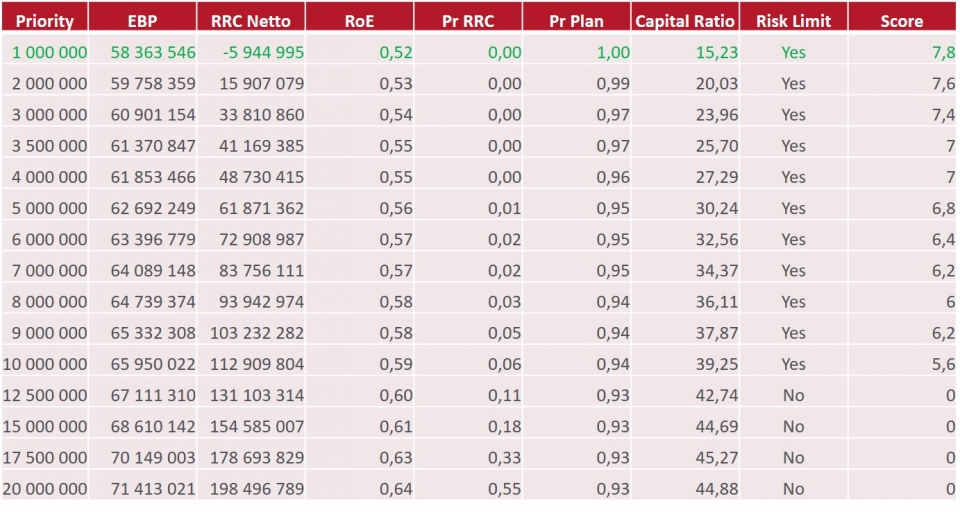 - commercial optimum - evaluation considers predefined risk limits and further risk scoring.